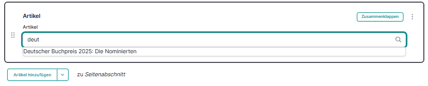 Ein Artikel kann z.B. ein Textbeitrag/einfache Seite oder eine Themenliste sein. Um einen neuen Artikel auf der Startseite einzufügen, müssen Sie diesen erst anlegen.