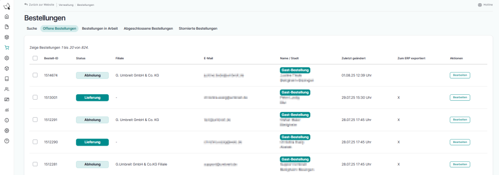 landet die Bestellung in „Abgeschlossene Bestellungen“. Falls gewünscht, können auch mehrere Bestellungen markiert und abgeschlossen werden.