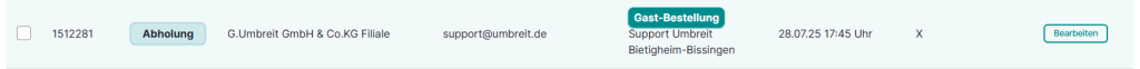 – letzte Änderung (Datum und Uhrzeit, wann die Bestellung zuletzt bearbeitet wurde).