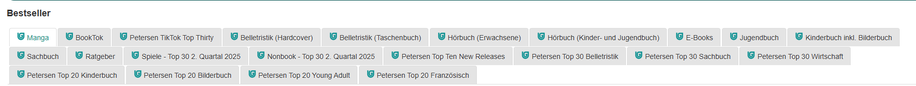 In diesem Bereich finden Sie verschiedene Bestsellerlisten, die von Umbreit redaktionell erstellt werden.