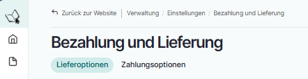 In diesem Bereich stellen Sie Ihre Liefer- und Zahlungsoptionen ein. Sie haben hier zwei Menüpunkte: Lieferoption und Zahlungsoption. Zum Ändern wählen Sie den gewünschten Menüpunkt an.
