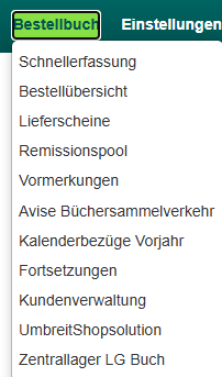 Für das gesamte Bestellbuch gilt: Durch Klick auf einen Spaltenkopf können die Einträge auf- oder absteigend sortiert werden.
