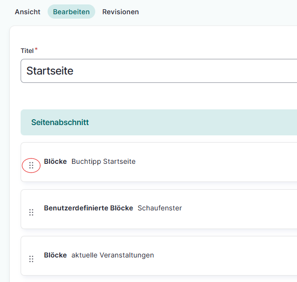 Um Elemente an einer anderen Stelle zu platzieren, halten Sie mit der Maus die Punkte links vor dem Element fest und ziehen dieses an die gewünschte Stelle.