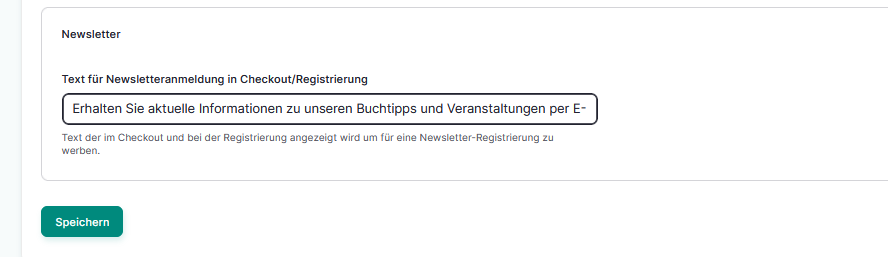 Hier können Sie eine Textzeile eintragen, die beim Checkout im Bestellvorgang und bei der Registrierung eines Kundenkontos zu sehen ist.