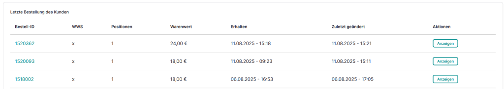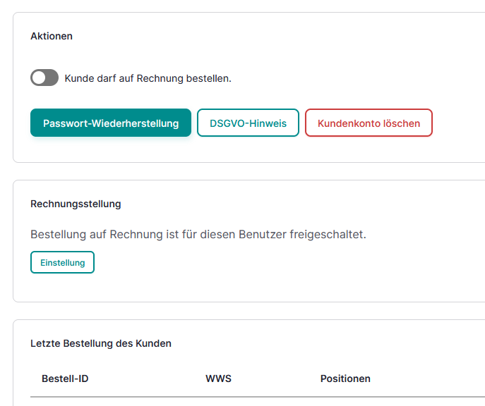 können Sie die gespeicherten Kundendaten und getätigte Bestellungen anschauen.