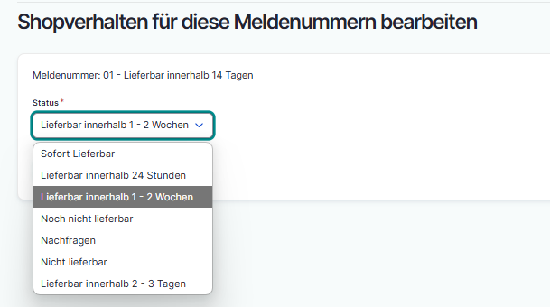 in ein Drop-Down-Menü für die jeweilige Meldenummer, mit dem Sie das Shopverhalten ändern können.