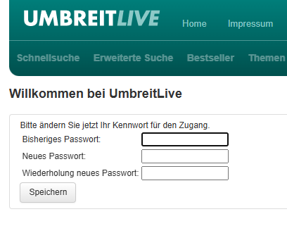 Um die Anwendung erstmalig zu betreten, geben Sie bitte Ihre Umbreit-Kundennummer und das Initial-Passwort ein, das Ihnen von Umbreit mitgeteilt wurde. Anschließend klicken Sie bitte auf die Schaltfläche „Login“.