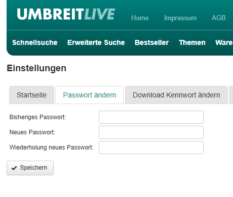Hier können Sie das von Ihnen selbst festgelegte Passwort ändern. Geben Sie dazu das aktuelle und das neue Passwort ein. Das neue Passwort müssen Sie aus Sicherheitsgründen wiederholen.