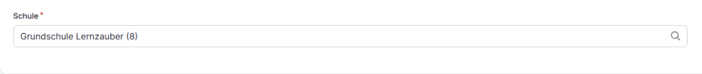 Im Eingabefeld Schule wählen Sie eine der vorab angelegten Schulen aus. Schreiben Sie dafür den Namen der Schule in das Feld und wählen Sie den richtigen Eintrag aus der Liste. Mit