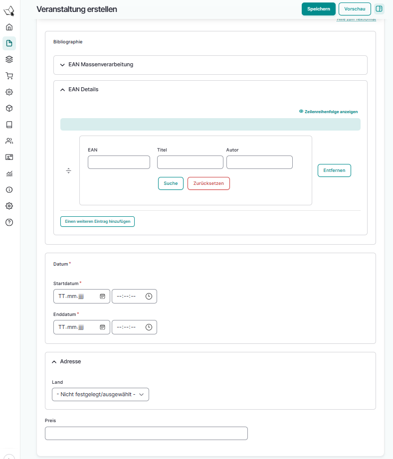 Verknüpfen Sie zur Veranstaltung passende Titel über das Feld „EAN Details“.
