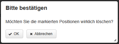 : Löscht einen oder mehrere markierte Artikel aus dem Warenkorb. Hier kommt eine Nachfrage zum Bestätigen der Löschung: