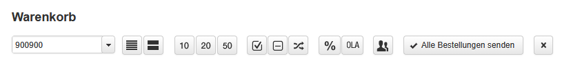 Hier finden Sie eine Übersicht über alle im Warenkorb befindlichen Artikel. Standardmäßig wird der Warenkorb der Hauptkundennummer angezeigt. Durch Auswahl der entsprechenden Kundennummer oder „alle“ im linken oberen Navigationsbereich werden die Bestellungen von einzelnen oder allen Ihren Kundennummern dargestellt.